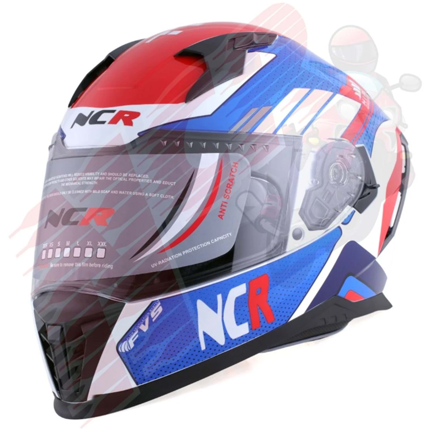 Kask Çene Sabit M69 NCR Gözlüklü (Kırmızı-Mavi Grafik) (XL)