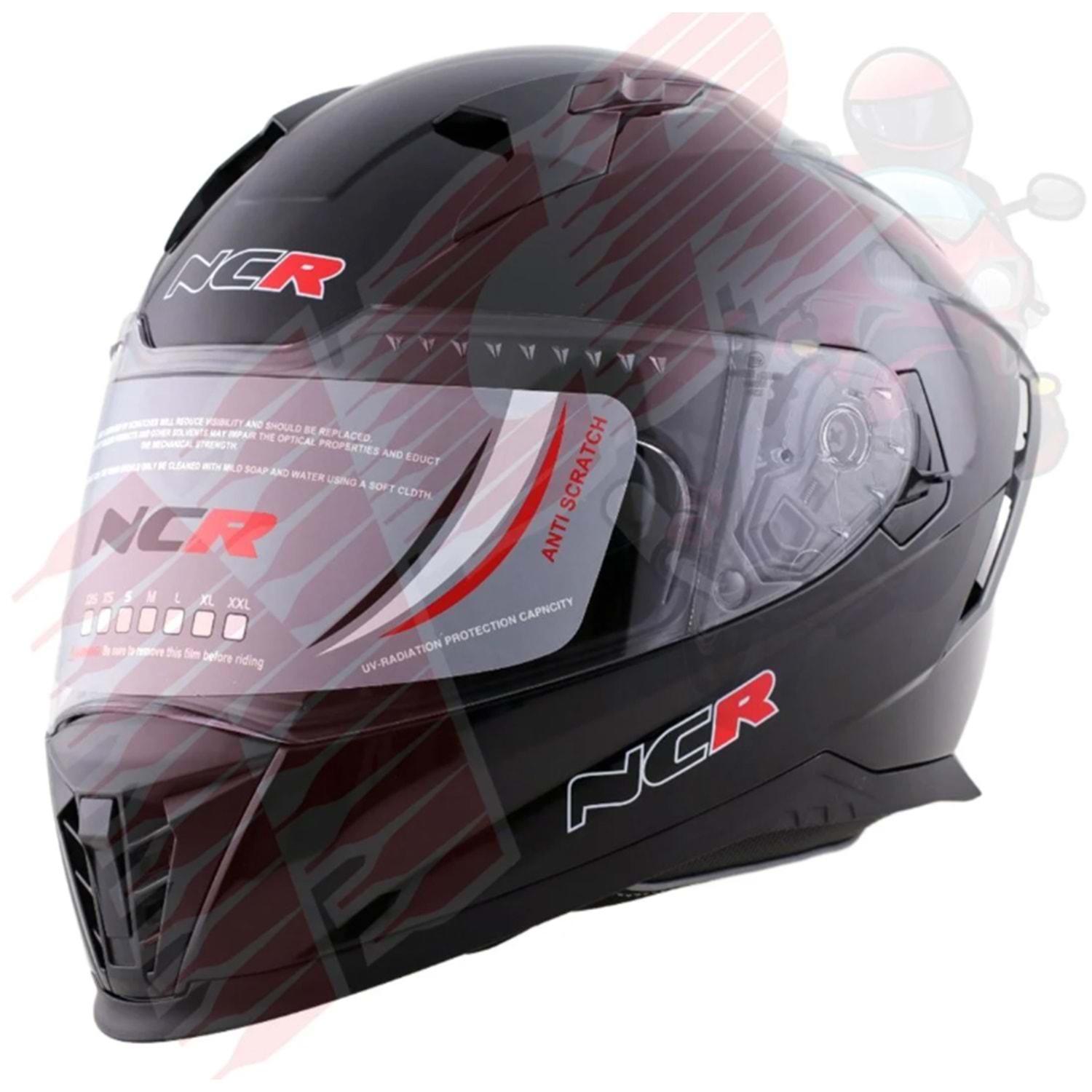 Kask Çene Sabit M69 NCR Gözlüklü (Parlak Siyah) (M)